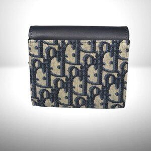 Dior Saddle Lotus Wallet in Blue Oblique Jacquard and Smooth Calfskin - New