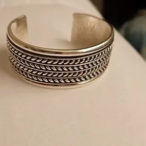 Stylish silver cuff bracelet featuring a unique rope design. Ideal for enhancing any ensemble with a touch of elegance.