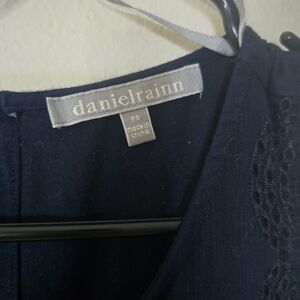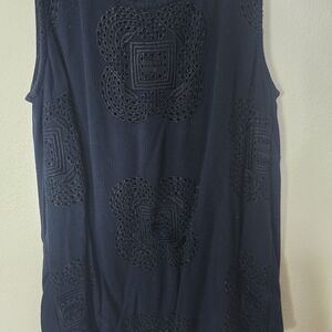 Daniel Rainn tank top, Daniel Rainn petite small, navy embroidered top, women’s sleeveless blouse, rayon tank top, navy blue top, embroidered tank, petite clothing, PS petite small top, boho embroidered blouse, workwear tank top, classic navy top, elegant sleeveless shirt, lined tank top, Daniel Rainn PS, embroidered rayon tank, preowned Daniel Rainn