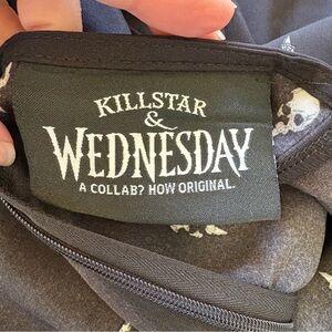 Fit & flare Little Storm Cloud Pinafore sleeveless dress from the Killstar x Wednesday collaboration in 2024. Tag says 2XL but please note this material has no stretch & a back zipper so it does run on the smaller side.