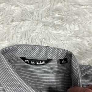Travis Mathew Women’s Button Up Collared Grey and White Striped Shirt - Large
