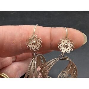 Vintage 925 Silver Large Filigree Flower & Bell Drop Earrings 7.59 Grams