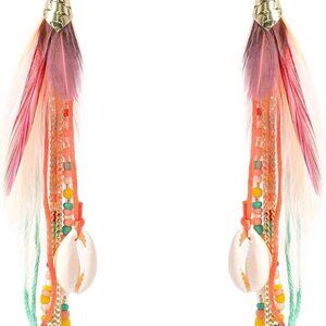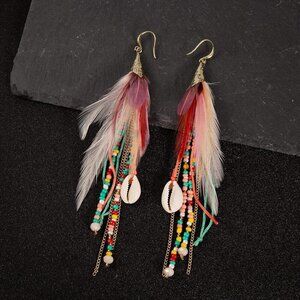 Bohemian Feather Dangle Earrings Shell Beads Long Tassel Women Jewelry