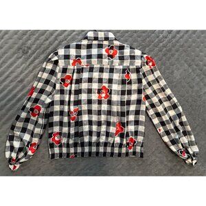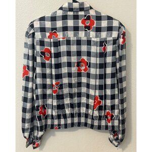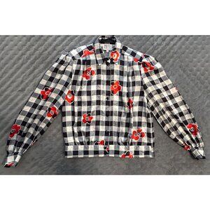Vintage Anne Klein Women's Black White Gingham Checkered Blouse Red Poppy Size 8