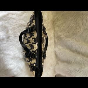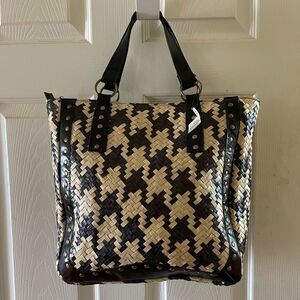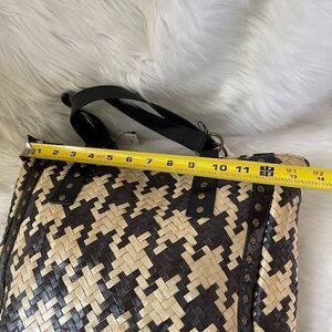 NWT Shiralea two tone black and beige woven straw tote with black double straps and trim with antique tone hardwares top zipper the padded inside has two side pockets.see all pictures any questions please message