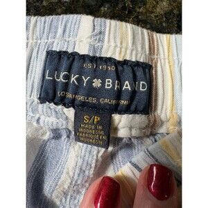 Lucky Brand Sleep Shorts Womens Size S Cream Tan Blue Striped Drawstring
