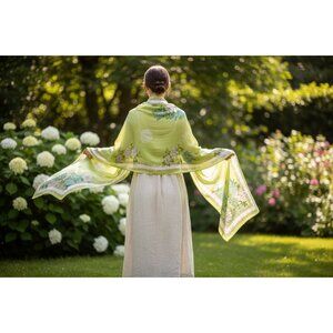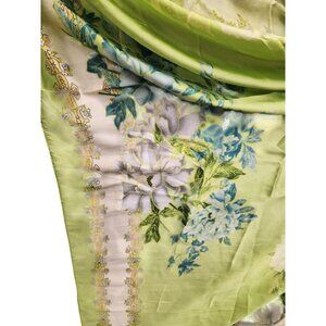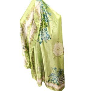 Green Floral Satin Scarf Lightweight Shawl Wrap Elegant Summer Accessory