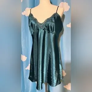 Two vintage slips. Thigh length. Lacy tops and hems. Adjustable straps. Green slip is "Delicates" Pink slip is "Erika Taylor Intimates." Both are size Large. Hand washed and ready to wear.