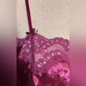 2 vintage slips. Fuschia and forest green. Lacy, embroidery on pink- L