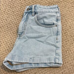 Chic light blue jean shorts. Perfect for everyday wear. Comfortable and stylish.