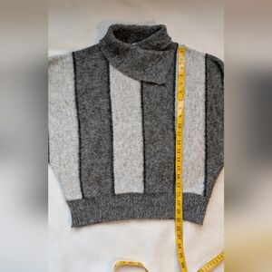 Vintage Elegant Made in Canada Striped Sweater 80s 90s Dolman Sleeve Condition: Great vintage condition. No stains, no holes, no loose threads. Size: No size tag present. Based on measurements, it appears to fit approximately a Small to Medium. Please go by measurements for accurate fit. Shoulder to hem: 21 inches Neck to end of sleeve: 21.5 inches Base width (hem laid flat): 16 inches Please review measurements carefully, as there is no size tag. Fit may vary depending on body shape and desired style. Description: Vintage “Elegant” sweater made in Canada (CA# 00644). Features a soft knit in gray and cream vertical stripes with black accents. Designed with a mock neck and relaxed dolman-style sleeves that create a slightly slouchy 80s/90s silhouette. Slightly cropped length with a fitted hem. Fabric: 80% acrylic, 20% nylon Care: Hand wash, flat dry Classic late 80s / early 90s aesthetic — perfect for vintage styling, cozy layering, or minimalist retro looks. Style Tags: vintage, 80s, 90s, made in Canada, retro sweater, dolman sleeve, batwing, striped knit, mock neck, cozy, minimalist, classic, grandma chic Model image is digitally created for styling inspiration. The actual item is photographed separately and accurately represented in the listing.