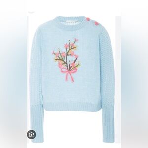 LoveShackFancy Light Blue Sweater with Pink Floral Embroidery
