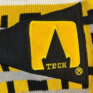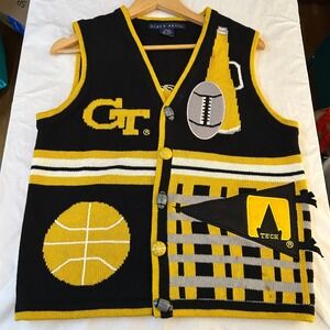Keywords: Georgia Tech, Yellow Jackets, NCAA Gear, Vintage Sweater Vest, Gameday Outfit, Collegiate Apparel Collegiate Pride, Knit Vest, Sports Novelty, Buzz Mascot, Ugly Sweater Style, Fan Gear, Black and Gold