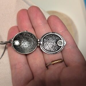 This necklace is Elena's locket from the vampire diaries. The front is in excellent condition, but the back has wear. The locket opens and closes and secures shut with a magnet. This is a must have for fans of the vampire diaries TV series. The locket and chain are silver toned, measuring approximately 19" long. New to Poshmark? Use my referral code "TIMECAPSULETOYS" when signing up to receive $15 off your first purchase!