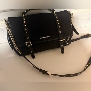 Chic black crossbody bag by Michael Kors. Features gold chain and studded details. Ideal for versatile styling. Stunning Bag