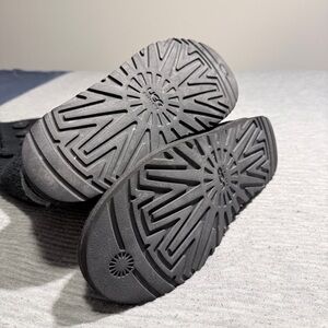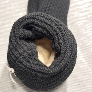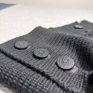 Stylish black knit boots with button accents. Cozy and fashionable for winter wear.