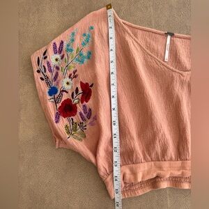 Free People gorgeous peach floral embroidered Blouse crop top