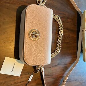 Marc Jacobs crossbody bag in blush. Features a stylish gold chain strap. Perfect for any occasion.NWOT
