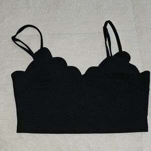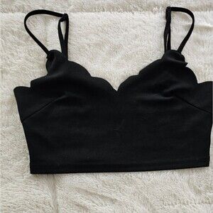 Black Scalloped CropTop With Adjustable Straps. Size Medium Excellent Condition
