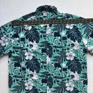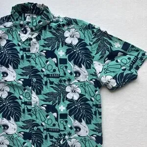 Rum Reggae Medical Shark Orca Shirt Mens Medium Teal Cotton Excellent Condition