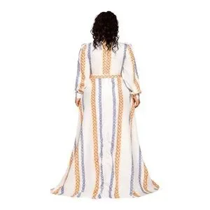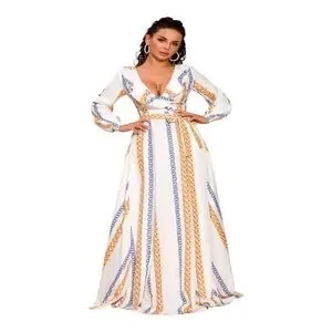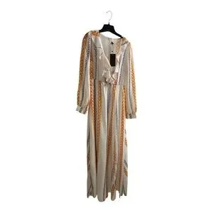 Chain Print Split Thigh Plunge Neck Ruffle Maxi Event Flowy Dress Size Large
