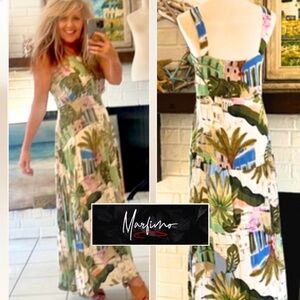 Marfino, Gorgeous Soft & Flowy Viscose Dress, Pelourinho Print, Side Zip, Size Medium, (MSRP $148) l Marfino Pelourinho Print Maxi Dress Coastal Resort Wedding Guest Size M