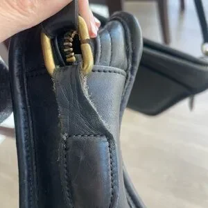 This vintage Coach bag is in great condition. The bag features an interior pocket with zipper, front pocket, and adjustable strap. Expected wear includes some surface scratches on the exterior leather. Interior is clean. Made in Costa Rica no. 9087.