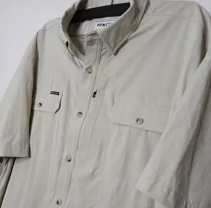 Men's Poncho Magnetic Pocket Regular Fit Short Sleeve Button Front Shirt Outdoor