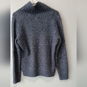 L.L. Bean Blue Shawl Neck Wool Blend Sweater Women Medium Fisherman Outdoor