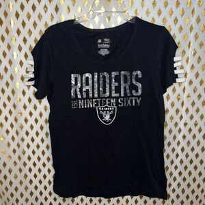 Women’s Raiders T-shirt foil silver arm cut outs size M