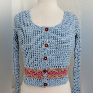 Hand Crochet Cropped Cardigan Sweater XS/S Coquette Cottagecore Boho Granny