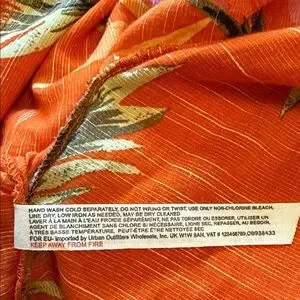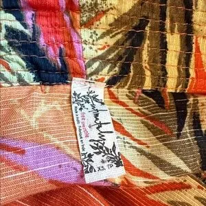 Colorful kimono with tropical patterns. Ideal for casual wear. Cotton blend. Hand wash cold. Open front. Adjustable drawstring shirred sleeves with bead and tassel accents. Side seam slits. In great condition - size XS