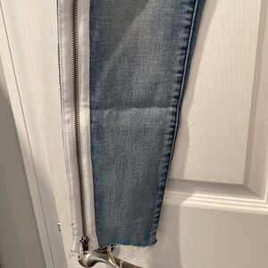 Mid rise skinny jeans with white detailed zipper down side that you can actually unzip or zip