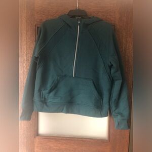 Stylish green half-zip hoodie with front pocket. Perfect for casual wear.