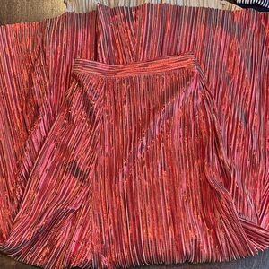 Shimmering red maxi skirt with a pleated design. Perfect for adding elegance to any outfit.