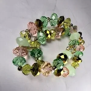 Enjoy this colorful stretchy bracelet with a combination of glass and crystal beads, 2 bands making it extra sparkly.