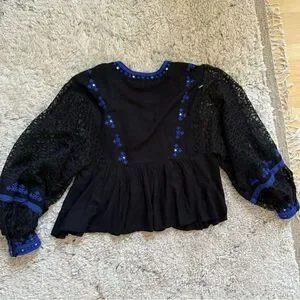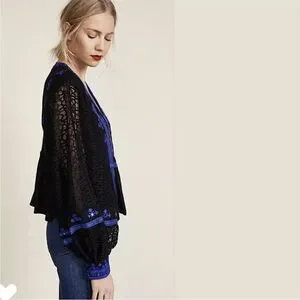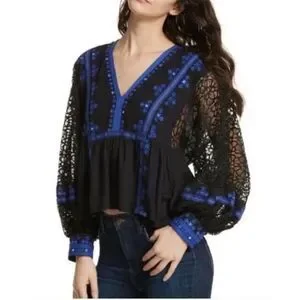 FREE PEOPLE Boogie All Night Peasant Blouse In Black S NWOT