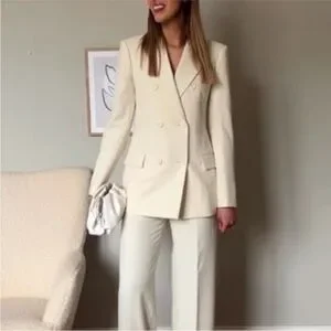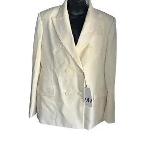 NWT ZARA TAILORED DOUBLE BREASTED BLAZER ecru color XL