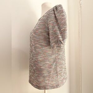 LOFT Colorful Knit Too Blouse with Puffed Sleeve | Size S