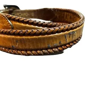 Stylish brown leather belt featuring a classic silver buckle. Perfect for adding a rustic touch to any outfit. This belt has definitely seen somewhere and tear, but it’s still beautiful and the price reflects that.
