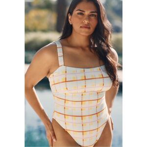 NEW By Anthropologie Sanja Scrunch Plaid Striped One-Piece Swimsuit Plus 3X