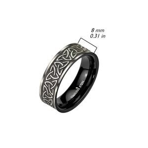 Tribal Celtic Trinity Knot Black Stainless Steel Ring 8mm width Size 9