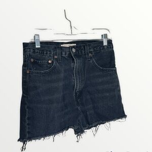 Stylish black jean shorts by Levi's. Run snug.
