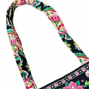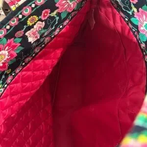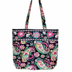 This Vera Bradley Petal Paisley tote bag features multicolor quilted accents, suitable for travel and casual occasions. The lightweight cotton fabric and inner pockets make it stylish and functional.