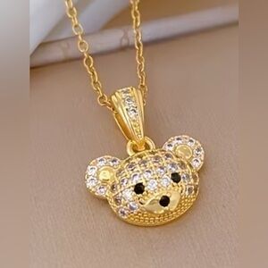 Bear Pendant Necklace Gold Stainless Steel