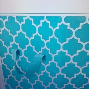 Color-Teal. Foldable w/ Reinforced Handles. Clear Window. Sturdy Zipper. Water Resistant Fabric. 24”Wide X 14”High X 17”Deep. Great for Blankets, Comforter, Clothes, or Stuffed Toys. Excellent Condition. Non Smoking Environment