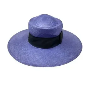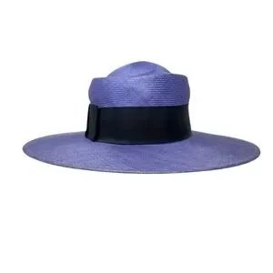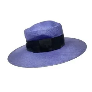 VTG Liz Claiborne Womens Pewter Blue Boater Lightweight Straw Sun Hat - Bow