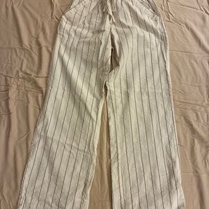 Stylish white pants with black stripes. Perfect for any occasion. Excellent condition, not see through! With pockets and a drawstring!