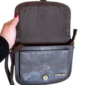 Estalon Brown Leather Multi Pocket Crossbody Travel Purse Sling Saddle Satchel