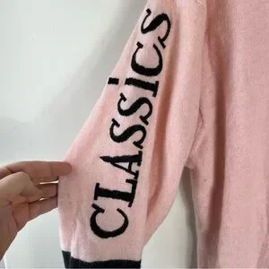 Vintage Mondi Grey Pink Wool Angora Tunic Cowl Neck Sweater Size 38 US Medium
